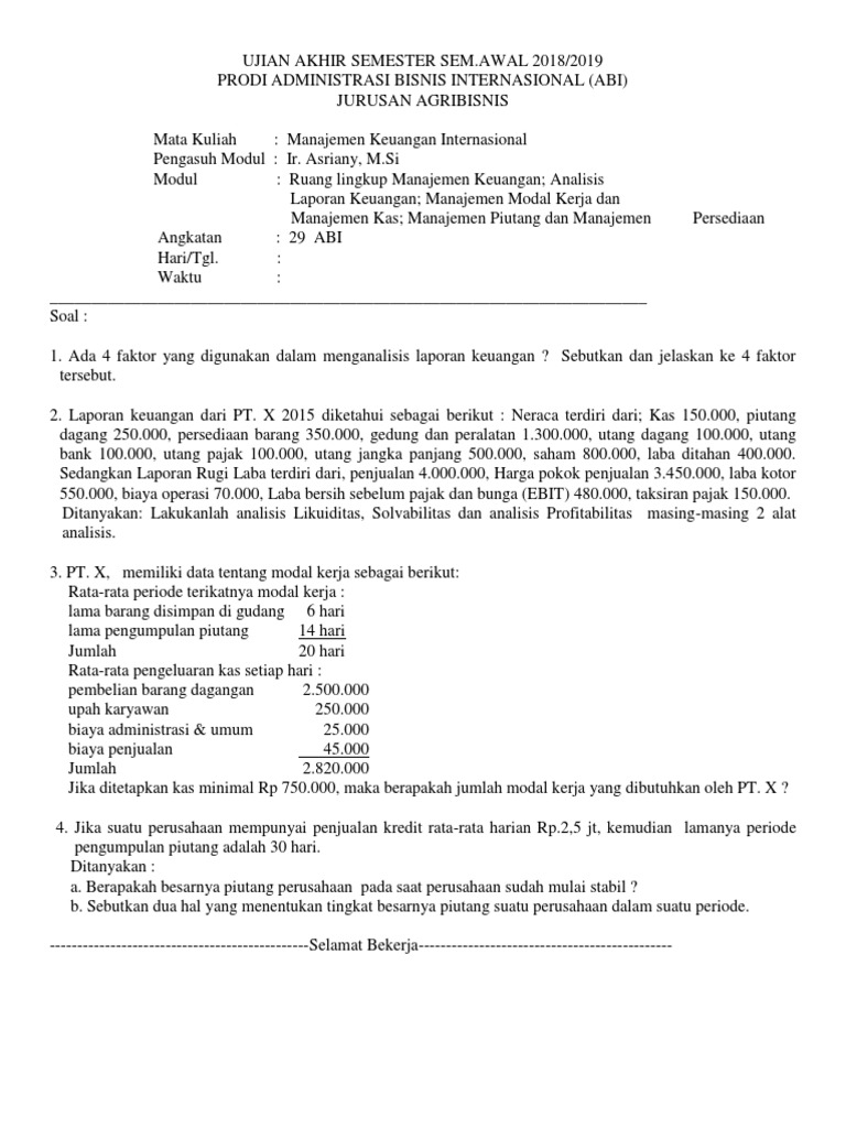 Soal Uas Manajemen Piutang - Tugas Manajemen Keuangan 2 Manajemen Piutang Persediaan 2019 / We did not find results for:. Check spelling or type a new query. Maybe you would like to learn more about one of these? We did not find results for: