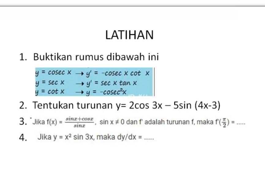 Turunan trignometri berantai contoh 5 turunan trigonometri dengan identitas.